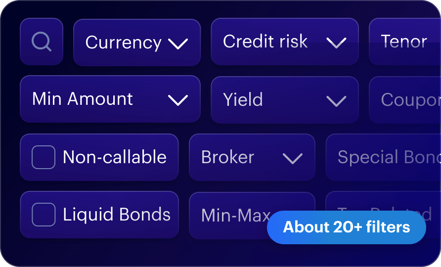 Filter bonds using 20+ professional criteria including yield, duration, credit risk, structure, liquidity and broker availability