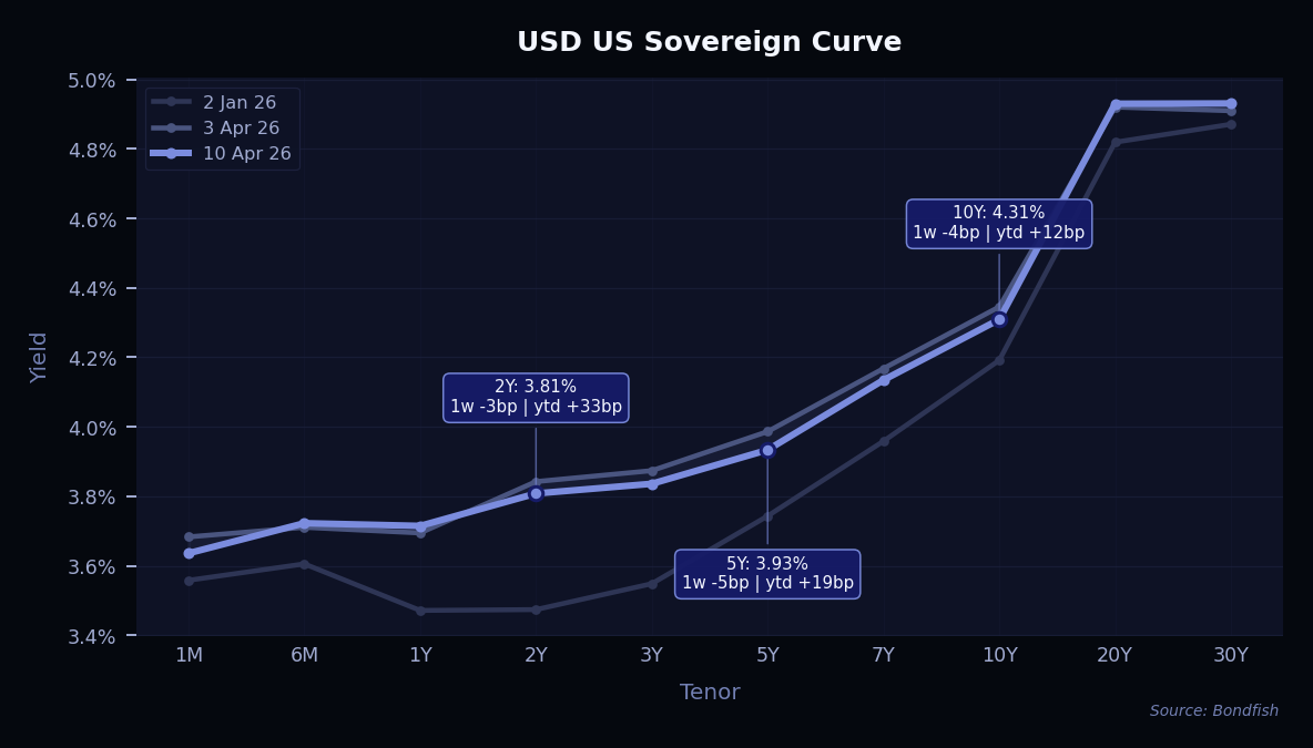 Primary markets reopened quickly after ceasefire headlines improved sentiment. Issuers used the calmer backdrop to come to market, with strong activity in both the US and Europe, and the pipeline for next week also looks busy, especially in high-grade and bank issuance. Demand remains strongest for large, high-quality borrowers, including AI-linked names, where investors still seem comfortable funding heavy capex plans. At the same time, the market is not fully open for everyone. Outside the strongest credits, issuers still need the right window and pricing discipline, as geopolitical risk and energy uncertainty continue to keep investors selective.